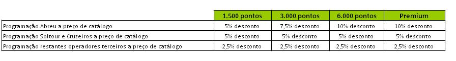 - 0% Do valor das compras em Factura é convertido em pontos (os clientes facturados continuam a beneficiar das condições previstas nos acordos bilaterais com a Abreu).